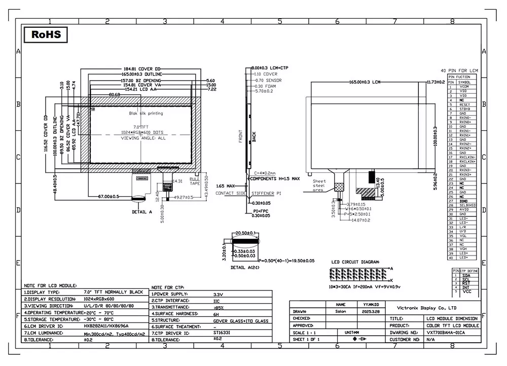 Victronix è un produttore di moduli TFT professionale e fornitore con sede in Cina. Con 18 anni di esperienza in questo campo, abbiamo sviluppato una varietà di modelli. Oltre ai nostri prodotti standard, offriamo anche servizi personalizzati per soddisfare le esigenze specifiche dei nostri clienti. Questo Victronix da 7 pollici 1024 × 600 LVD IPS TFT LCD è un robusto modulo LCD TFT da 7 pollici progettato da Victornix per richiedere applicazioni industriali, incorporate e commerciali. Combinando visioni vivide, funzionalità di tocco reattivo e affidabilità di livello industriale, questo modulo offre prestazioni eccezionali in diversi ambienti operativi.